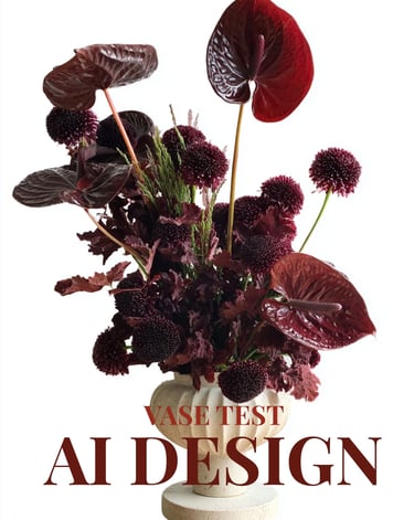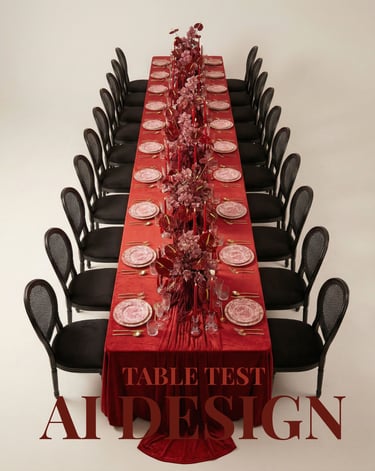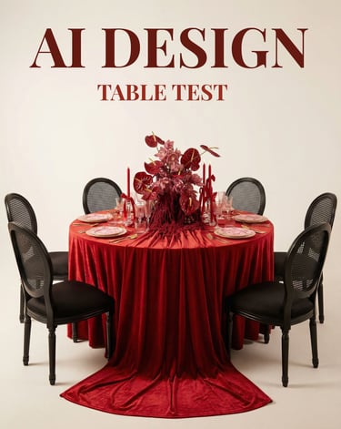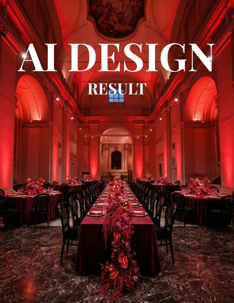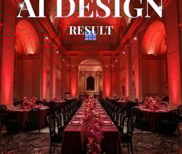 After getting references and details from the designer, we were able to use different AI tools to create floral compositions, centerpieces, and even complete tables with matching designs to populate the initial empty room picture.